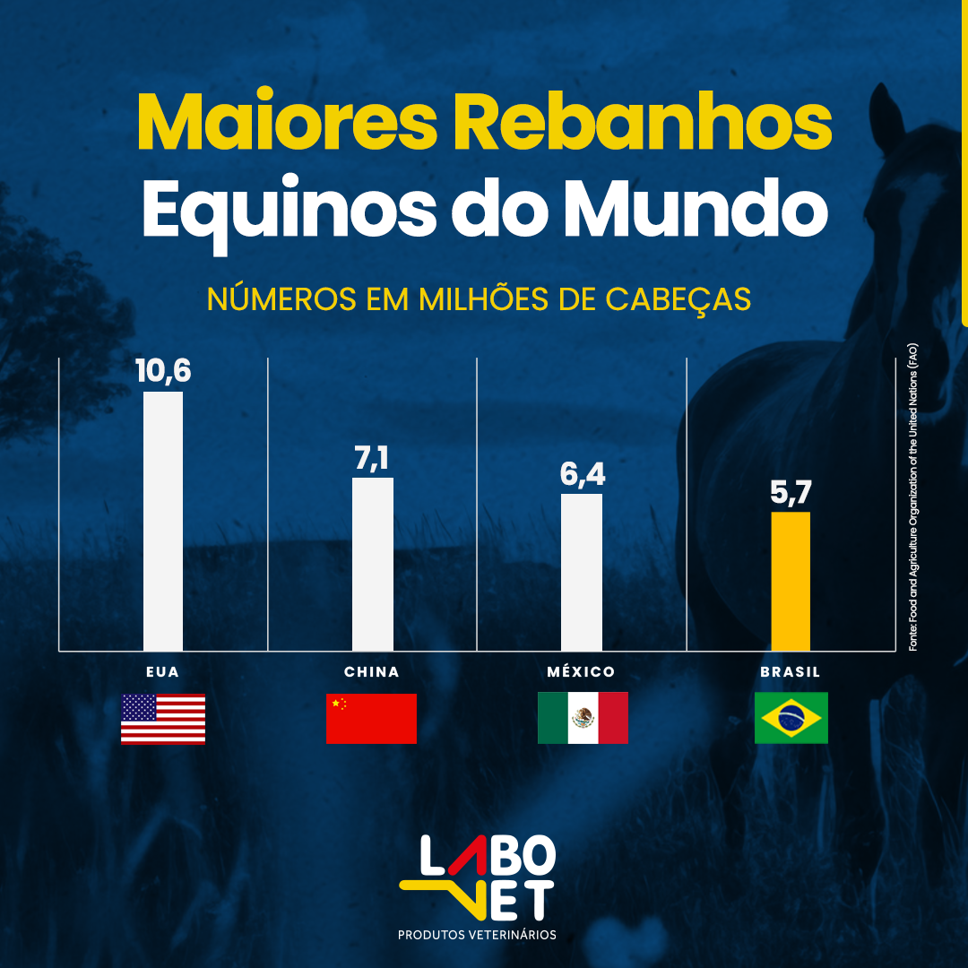 A população de cavalos no Brasil e no mundo vem aumentando com o passar do tempo. Com quase 6 milhões de cabeças, o Brasil fica atrás apenas dos Estados Unidos, China e México.